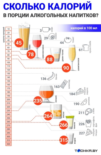 • Узнайте калорийность популярных алкогольных напитков — наглядная инфографика